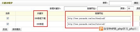 第三步:后台>核心>批量维护>文档关键词维护,在这里面设置关键词以及指向网址的链接,也可以手动添加自己需要的关键词和链接,如下图所示: