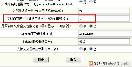 第二步:后台>系统>系统基本参数>其他选项>文档内容同一关键词替换次数(0为全部替换),设置为1,同一个关键词内链只有一个投票权,设置多了没作用,反而加重了蜘蛛的爬行负担,如下图所示: