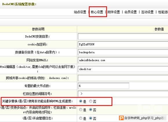 第一步:在织梦后台>系统>系统基本参数>核心设置>关键字替换(是/否),这里选择“是”,如下图所示: