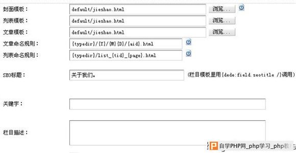 最后,还有一个就是栏目模板的设置,因为只有一个页面可以新建一个单独的页面.