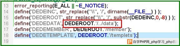 找到系统目录下/include/common.inc.php文件,如下图,修改DEDEDATA常量为/../data