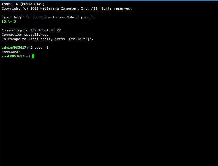 五、以root用户登录群晖的SSH,我这里使用的是xshell这个软件;