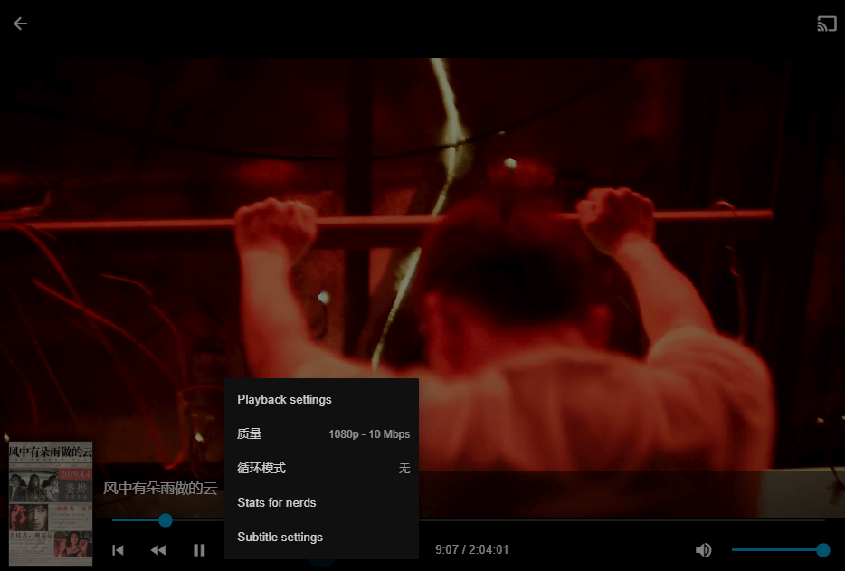 这个时候,我们就需要Jellyfin 的实时转码功能啦。比方说我们可以选择 1080P 10Mbps 、或者选择720P 3Mbps来解决刚刚提到的两点问题。