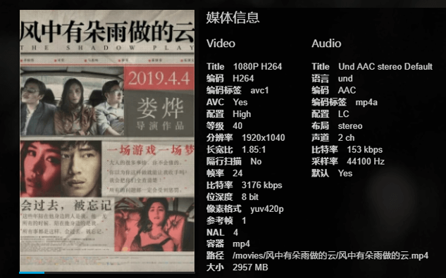 首先,我们测试一部1080P 电影。影片参数如下图: