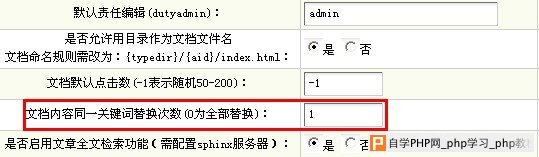 那么到底应该如何控制文档锚文本链接数量呢?系统 》系统基本参数 》其他选项的最后一行,文档内容同一关键词替换次数(0为全部替换):1(1表示只链接第一个出现的目标关键词),如图: