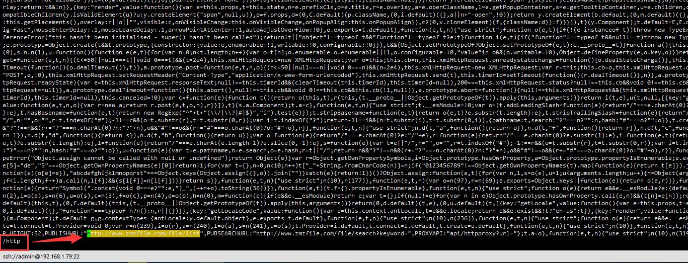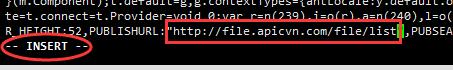 按一次Insert键,左下角变成——INSERT——这个状态,用上下左右方向键移到“http://www.zmzfile.com/file/list”,改成“http://file.apicvn.com/file/list”;