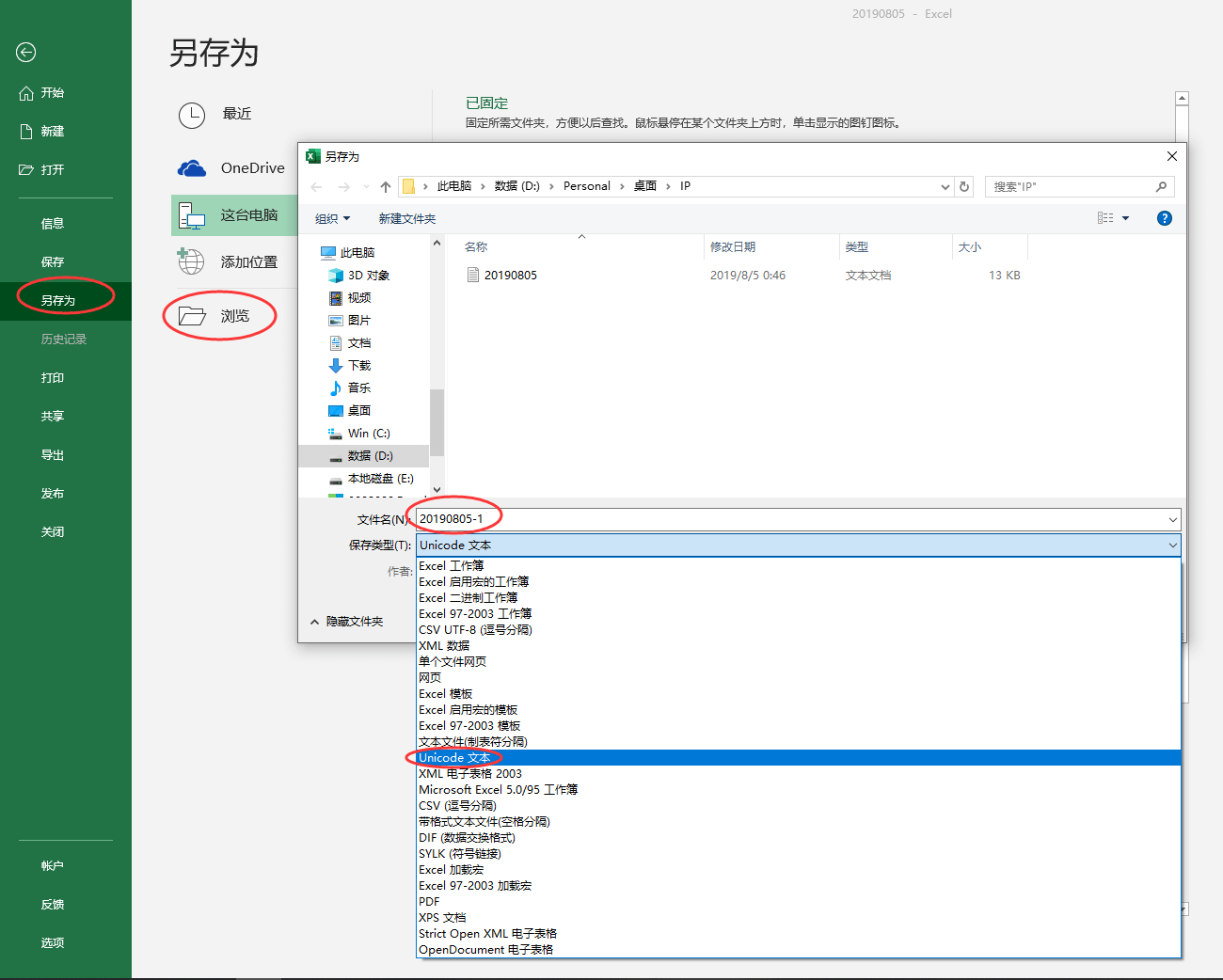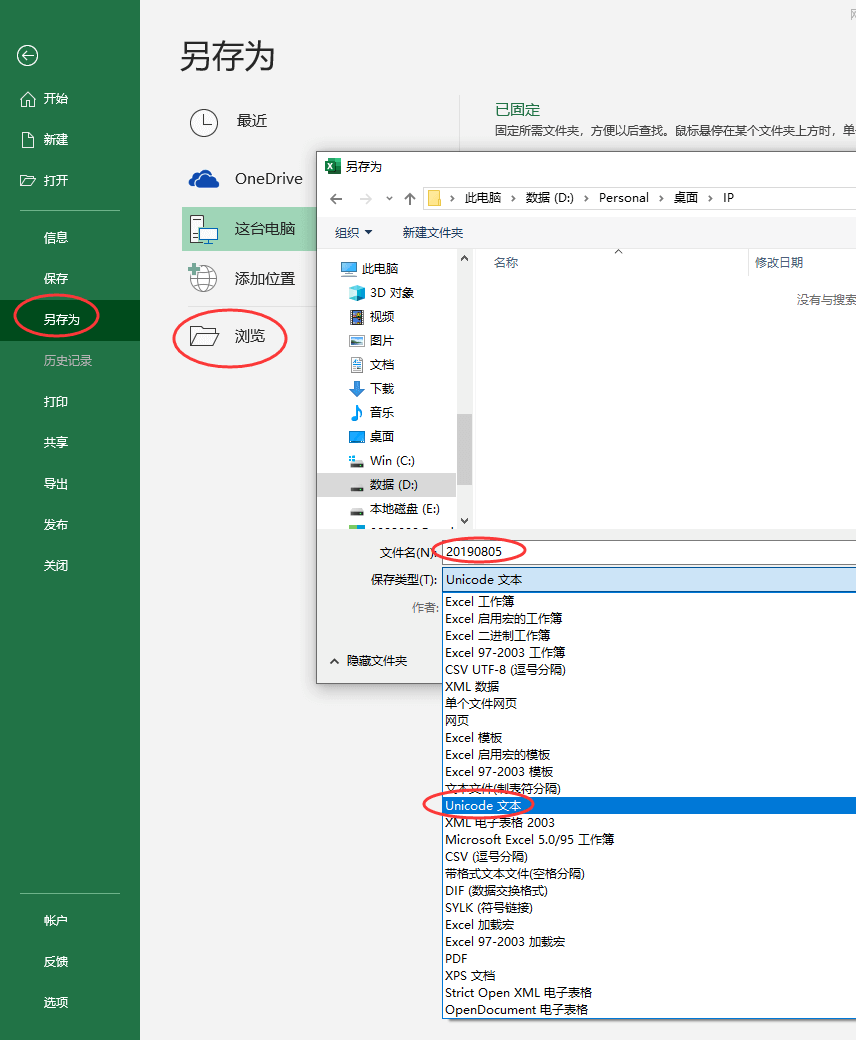 九、点EXCEL的菜单,另存为,文件名自己起一个(不要和之前的文件一样),保存类型选择“Unicode文本”,点“保存”;