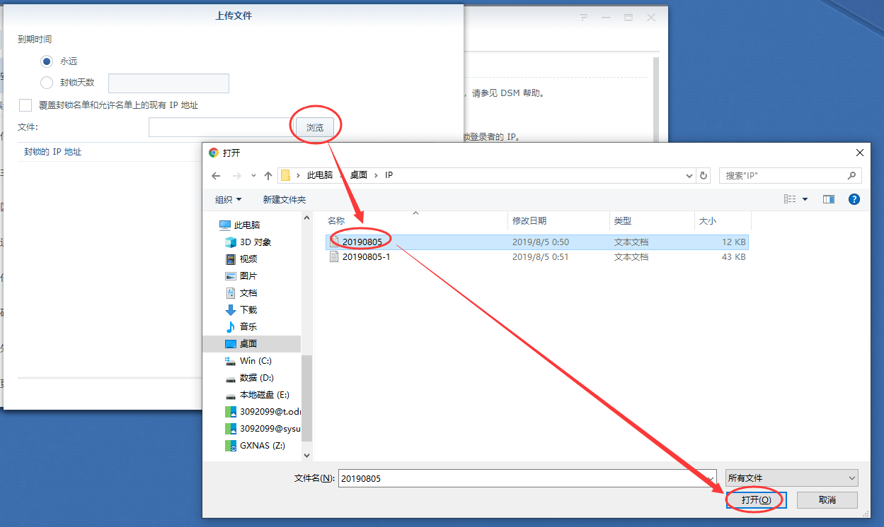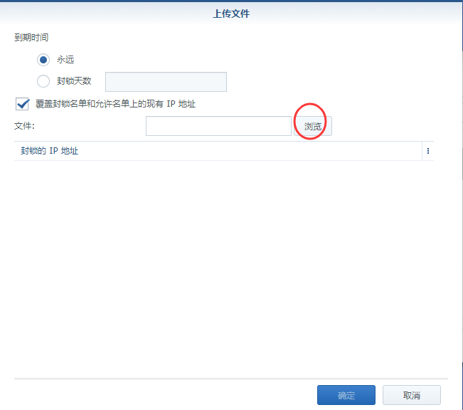 十七、勾选“覆盖封锁名单和允许名单上的现有IP地址”,点“浏览”;