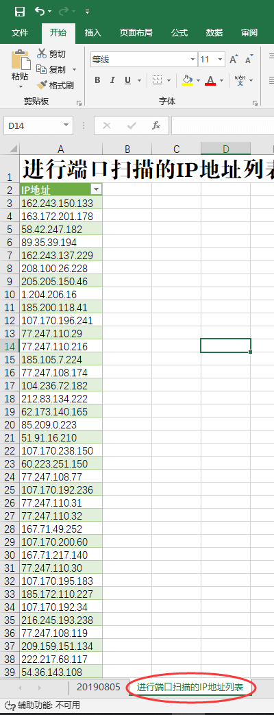 八、打开第二个表格“进行端口扫描的IP地址列表”;