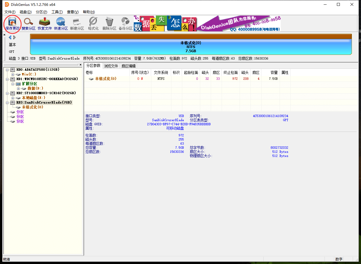 1、DiskGenius:删除硬盘分区的工具,本教程用DiskGenius V5.1.2.766_x64;