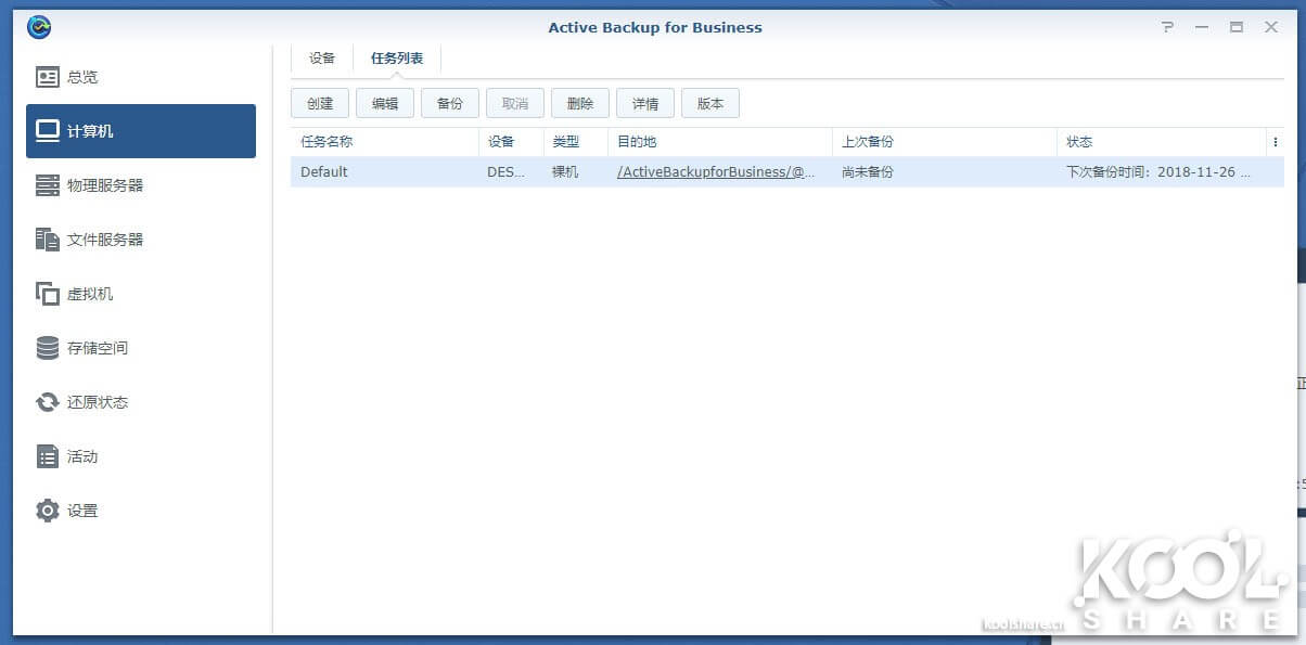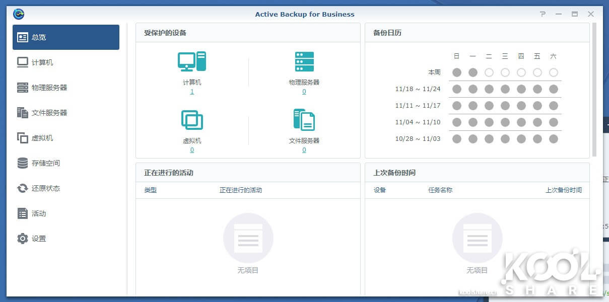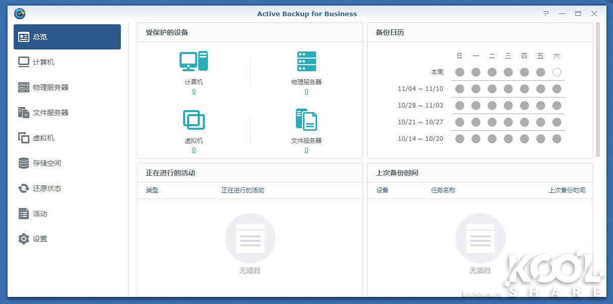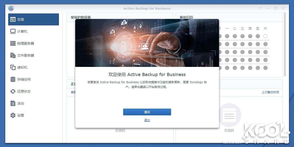 激活后可以看到Active Backup for Business的主界面。