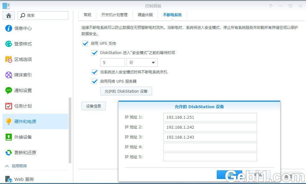 连接usb的黑群晖作为ups主服务器,设置如下: