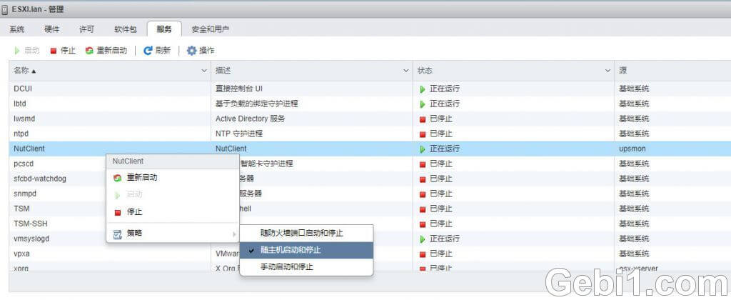 然后在esxi的网页管理界面配置-高级设置-UserVars中填写ups服务配置