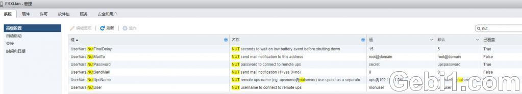 UserVars.NutFinalDelay:15(关机时间,我这是15秒后关闭esxi)