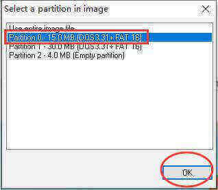 3、在弹出的菜单中选择第一个分区15.0 MB这个,点OK;如果没有弹出这个选择的菜单,可以点蓝色的“Select...”这行字手动选择;