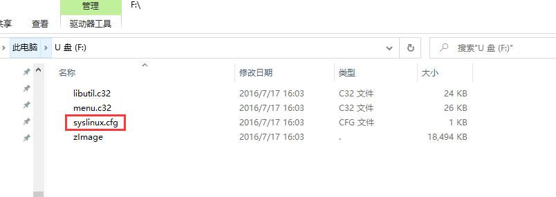 (1)把U盘插上电脑,浏览U盘的文件,找到syslinux.cfg;