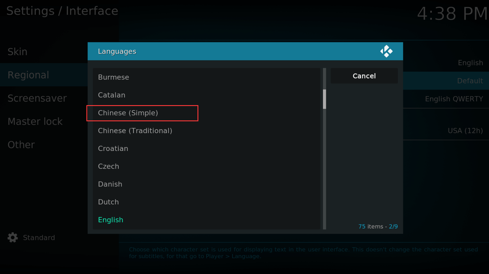 接着将Kodi设置成中文