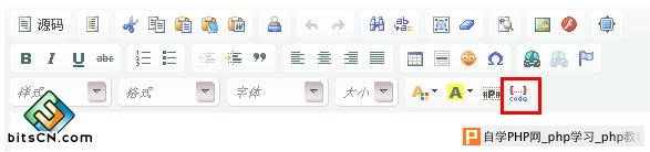 将syntaxhighlight文件夹上传到/include/ckeditor/plugins/文件夹下,打开后台,添加文章试一下,看看编辑器的上最后一行是否出现了如图所示的按钮: