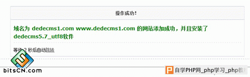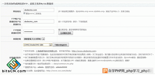 8、此时LUM系统已安装好,也就是说服务器环境已配置完成,接下来就是快速安装DEDECMS程序。点击快速建网站出现如下图: