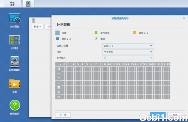 9、计划管理,这里选择连续和动作侦测两个选项,动作侦测就是有异动时候再录制