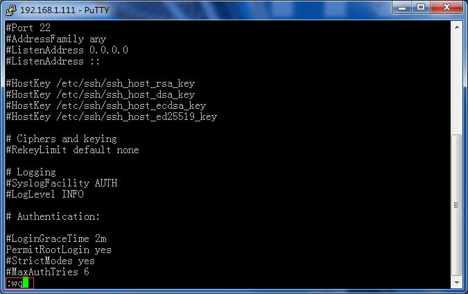11、按一次键盘的ESC键,然后输入:wq回车,退出编辑状态;