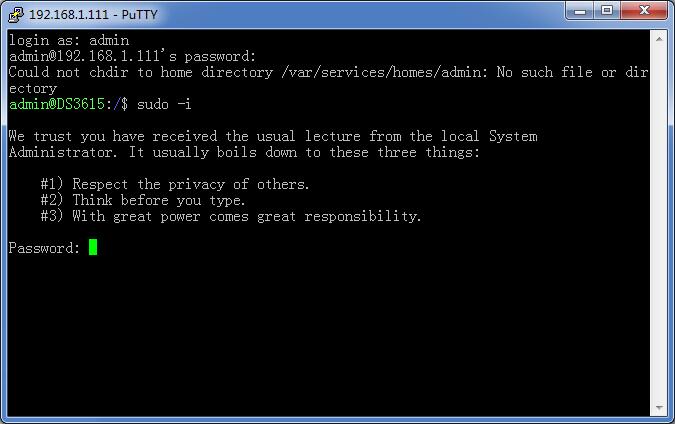 4、登录用户写admin,密码为admin用户登录群晖的密码(输入密码时,屏幕不会有任何显示,无需理会,输完按回车即可);