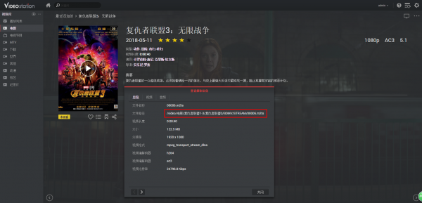 8、耐心等待几分钟,等video station进行刮削和索引完成,就会有封面海报出来了,点进去;