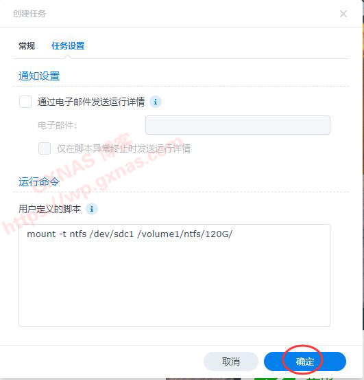(2)脚本中的“/volume1/ntfs/120G/”为第10步骤复制出来的路径,具体以你实际路径为准,不要照抄我的;