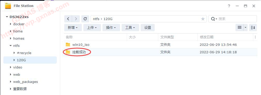7、打开File Station,找到刚才建立的ntfs文件夹,点菜单上的“新增”—“新增文件夹”;