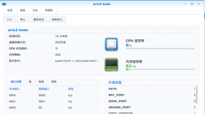 点击顶部的 “详情” 选项,可以查看容器aria2-kode的信息。