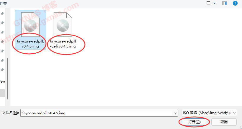 六、找到第三步骤下载的文件(如果下载的是.gz文件,需要先解压出来,才有.img文件),根据NAS主机是使用uefi还是legacy启动方式,选择对应的文件,打开。