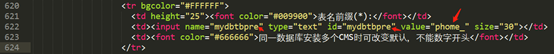 1、漏洞出现位置如下图,phome_表前缀没有被严格过滤导致攻击者构造恶意的代码