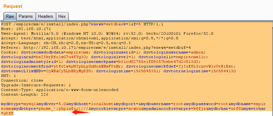 该漏洞是由于安装程序时没有对用户的输入做严格过滤,导致用户输入的可控参数被写入配置文件,造成任意代码执行漏洞。