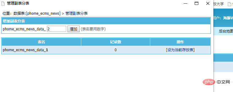 打开分表后,点击增加,这里虽然说可以自己设置分表名称,但为了后边的操作方便,建议大家还是使用默认的数字分表就可以,不要随便的去更改。