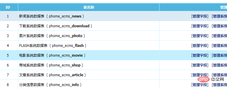 首先进入到帝国的后台,点击系统-数据表与系统模型-管理数据表,接下来就可以看到熟悉的画面了