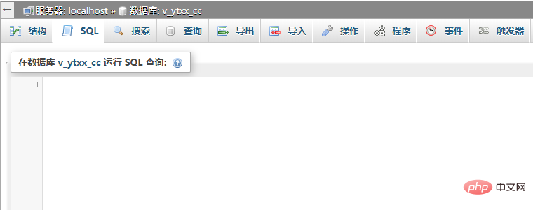 进入phpmyadmin后,点击需要操作的数据库,然后不要在右边点数据库,直接点SQL进入到命令操作行,在pma面板上大写的哦