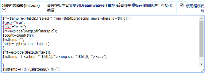列表页调用所有小图,方法如下:,一定要勾选使用程序代码
