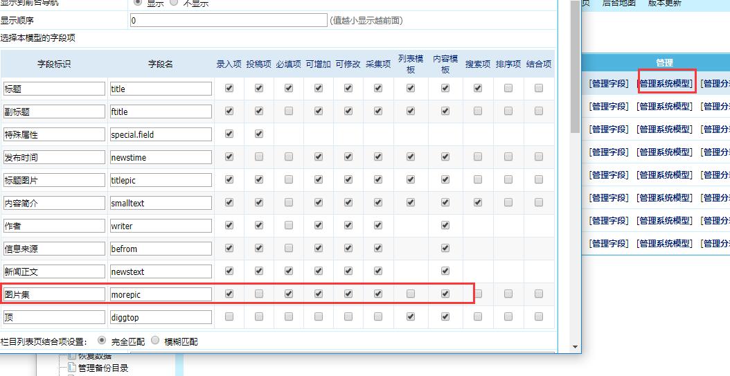 1、增加字段,可以仿照图片系统的字段值,添加到新闻系统,注意值,要不然调不出来