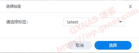 6、“请选择标签”这里默认为“latest”即最新版本,点“选择”;