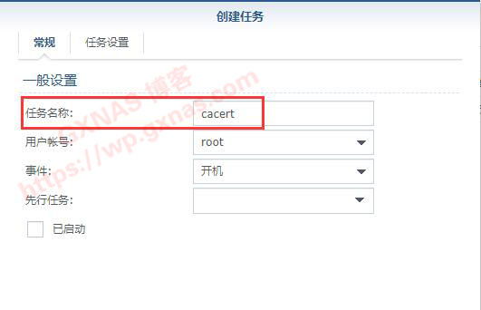 12、任务名称随意写,我写的是“cacert”,用户账号选“root”;