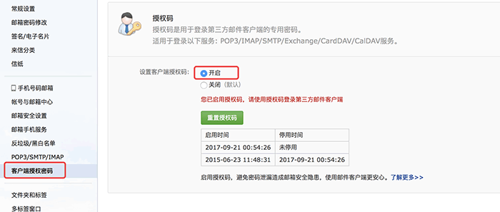 2、设置授权码,因为之前已经设置过授权码,所有截图中显示的是“重置授权码”,按照你看到的提示操作就可以。