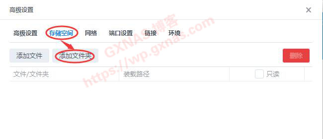 10、点“存储空间”,添加文件夹;