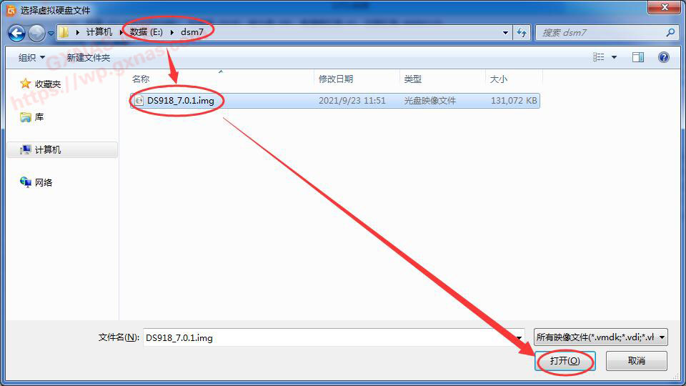 4、进入第1步建立的文件夹,找到DS918_7.0.1.img文件,打开;