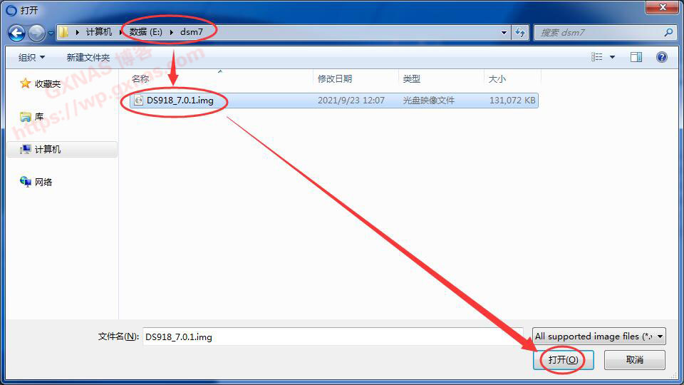 20、找到改好的DS918_7.0.1.img,打开;