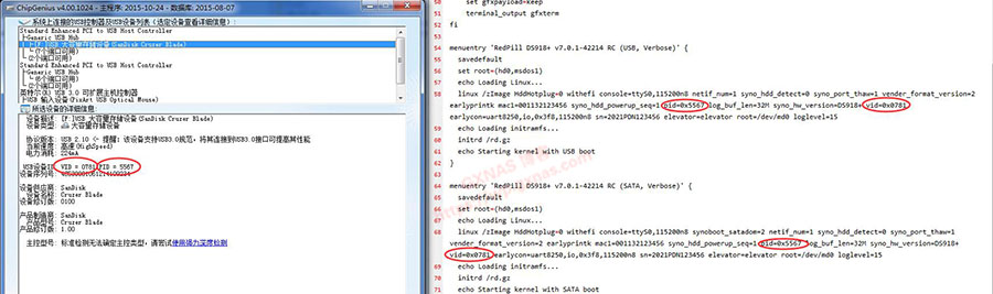 11、确认一下ChipGenius当前选择的是正确的U盘,这个U盘需要做群晖的引导盘,找到VID和PID,等下需要用。