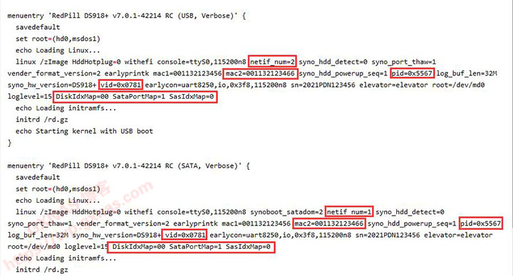 (4)DiskIdxMap、SataPortMap、SasIdxMap:由于DSM7.0引导要求SATA1口必须接上硬盘,同时还要添加这三个参数才可以顺利安装(这三个参数的具体说明,可以先查看本文末尾的“有关DiskIdxMap、SataPortMap、SasIdxMap三个参数的说明”),因此我只在主板SATA1口接了一个硬盘,所以使用的是DiskIdxMap=00 SataPortMap=1 SasIdxMap=0。