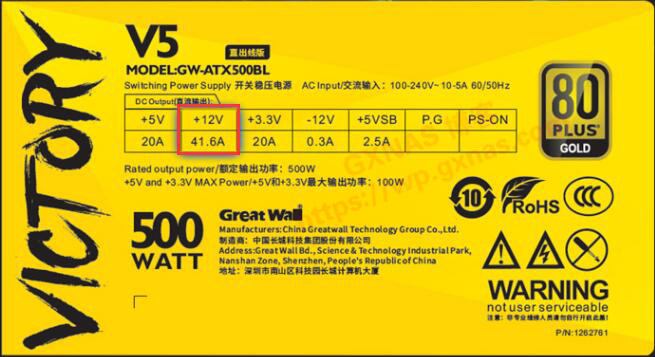 1、+12V这个地方显示是41.6A,那么粗略可得知这个500W的电源最多可以带13个机械硬盘;
