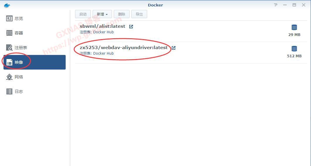 十四、回到群晖,打开Docker ,在映像菜单,看到有“zx5253/webdav-aliyundriver:latest”;