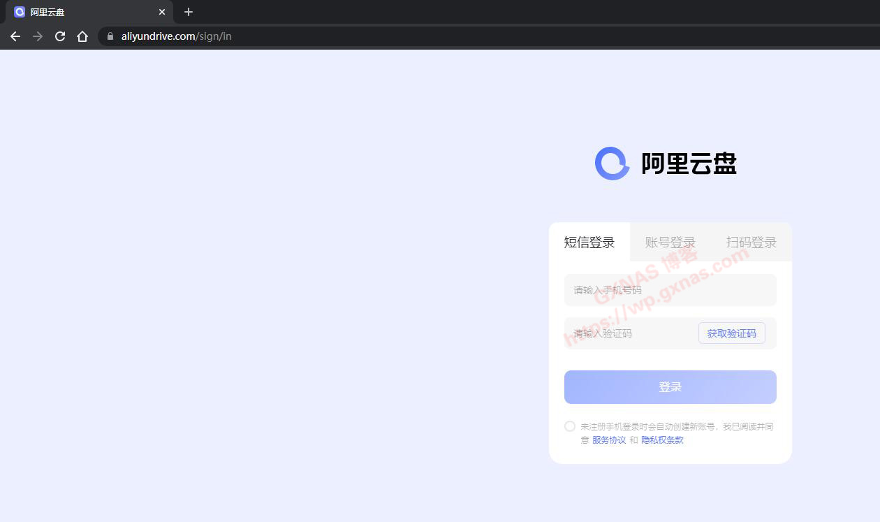 五、在浏览器窗口打开【阿里云盘】,登录;