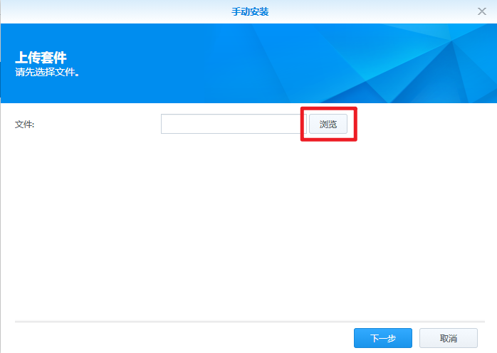 1、打开群晖桌面的套件中心,选“手动安装”;